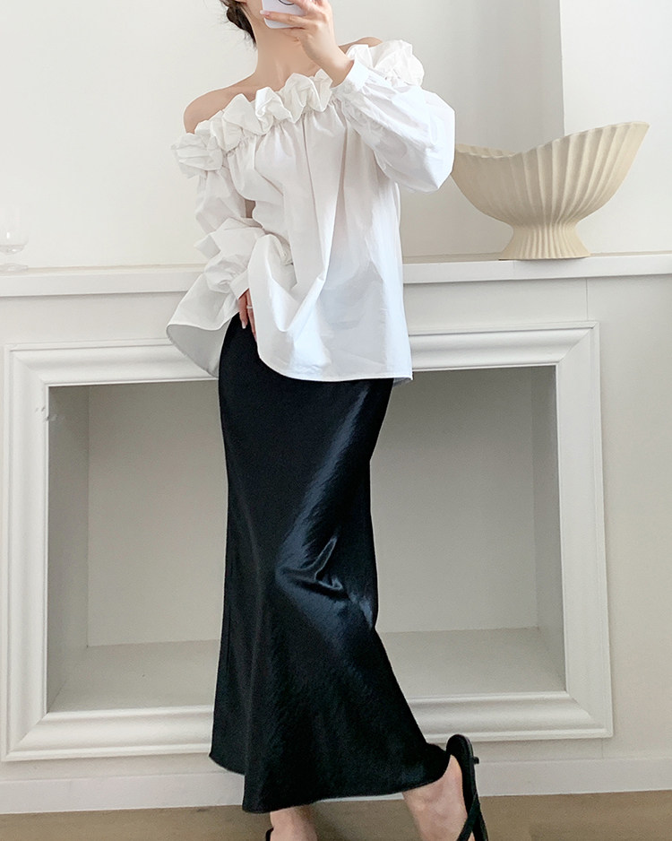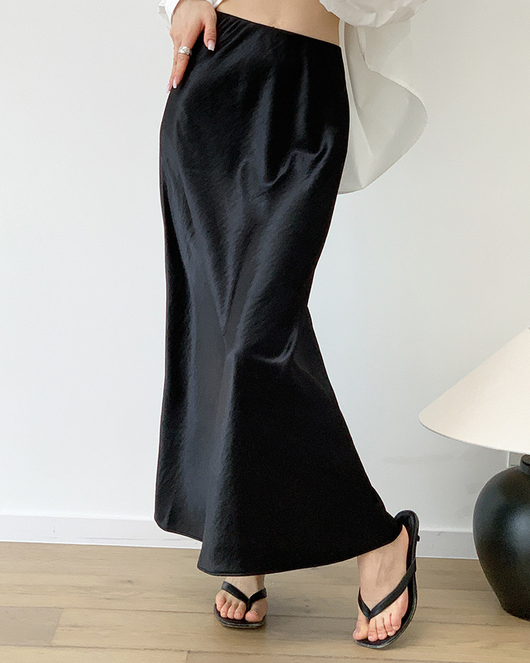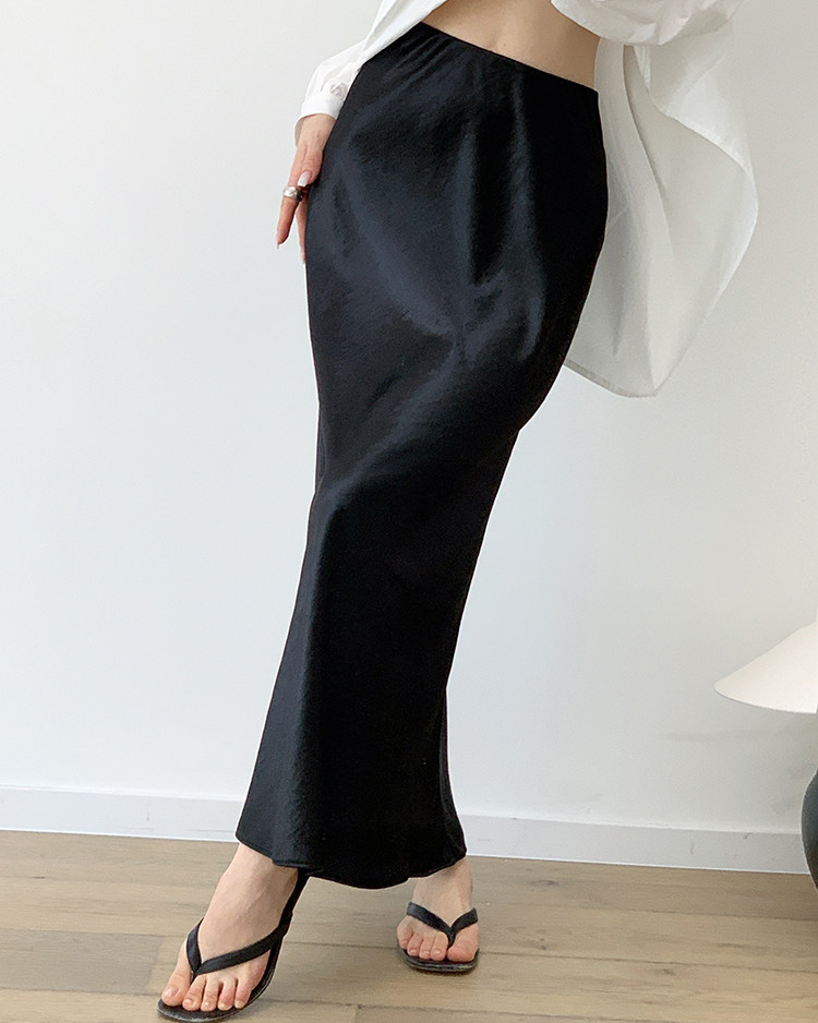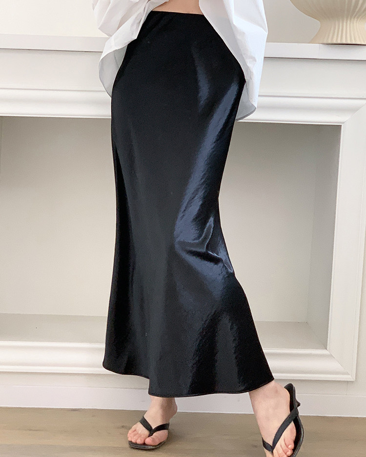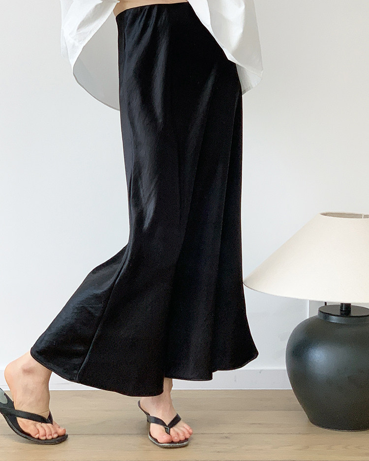 韓系赫本 光澤肌理感緞面黑半裙 數量