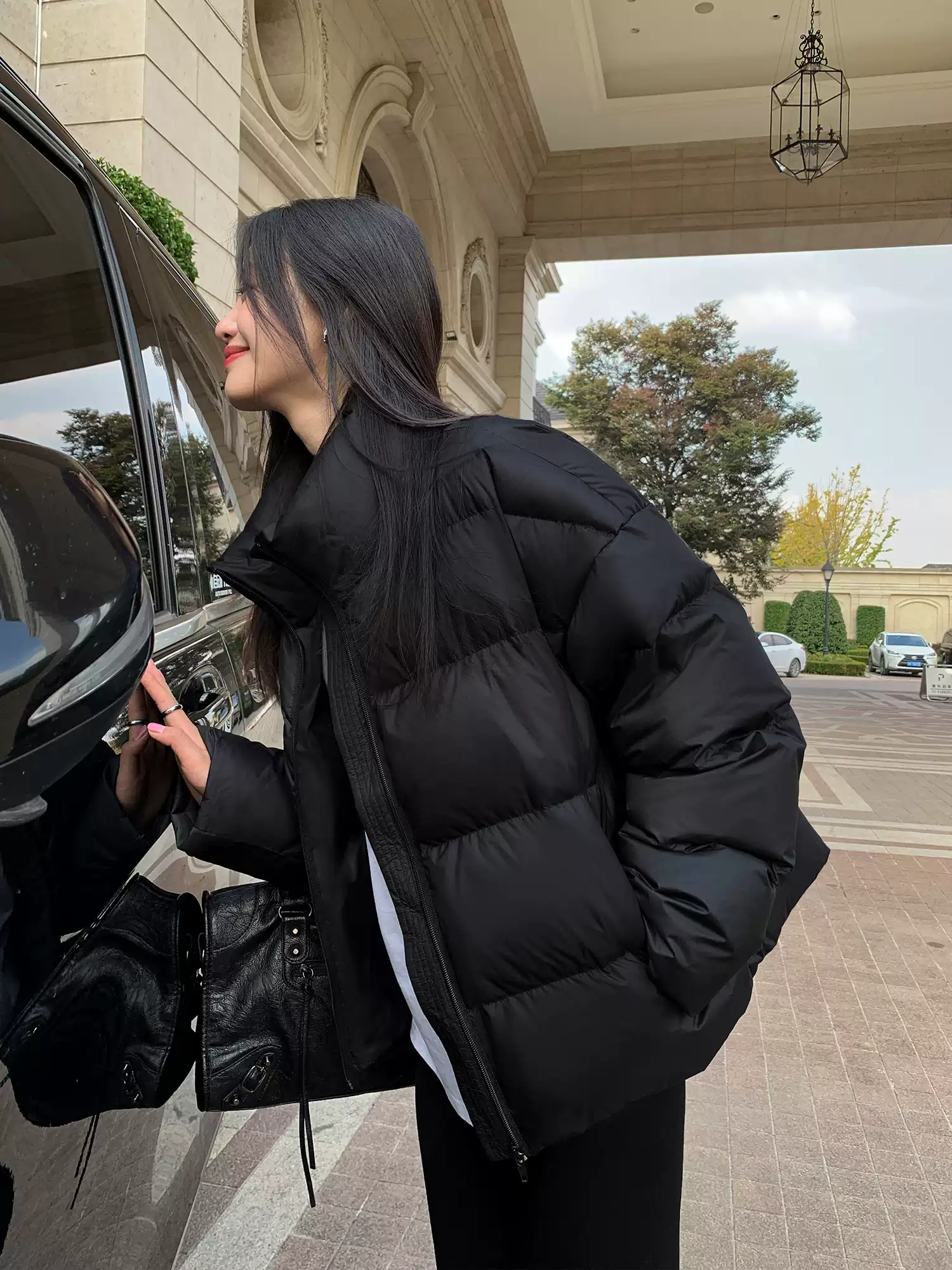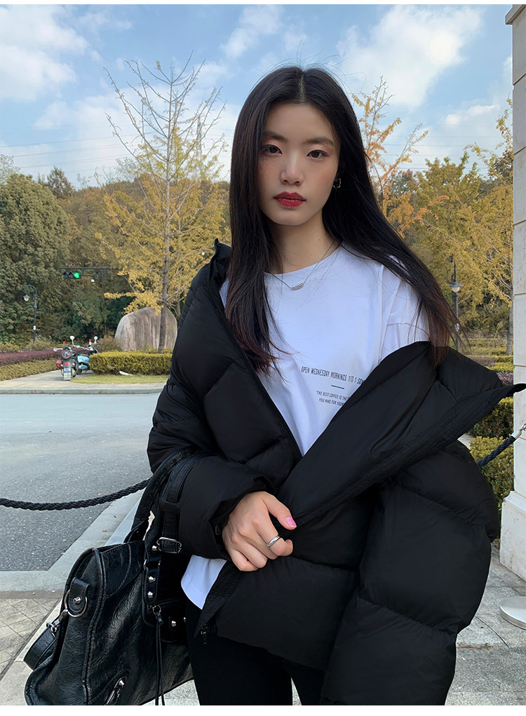 黑夜白晝 90白鴨絨輕薄麵包外套 純黑