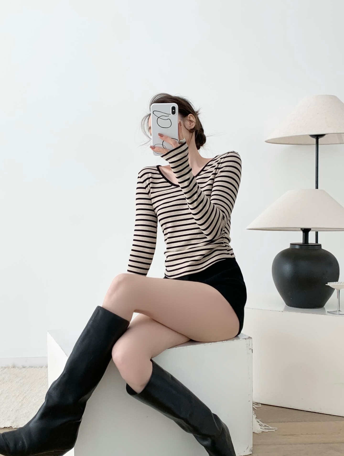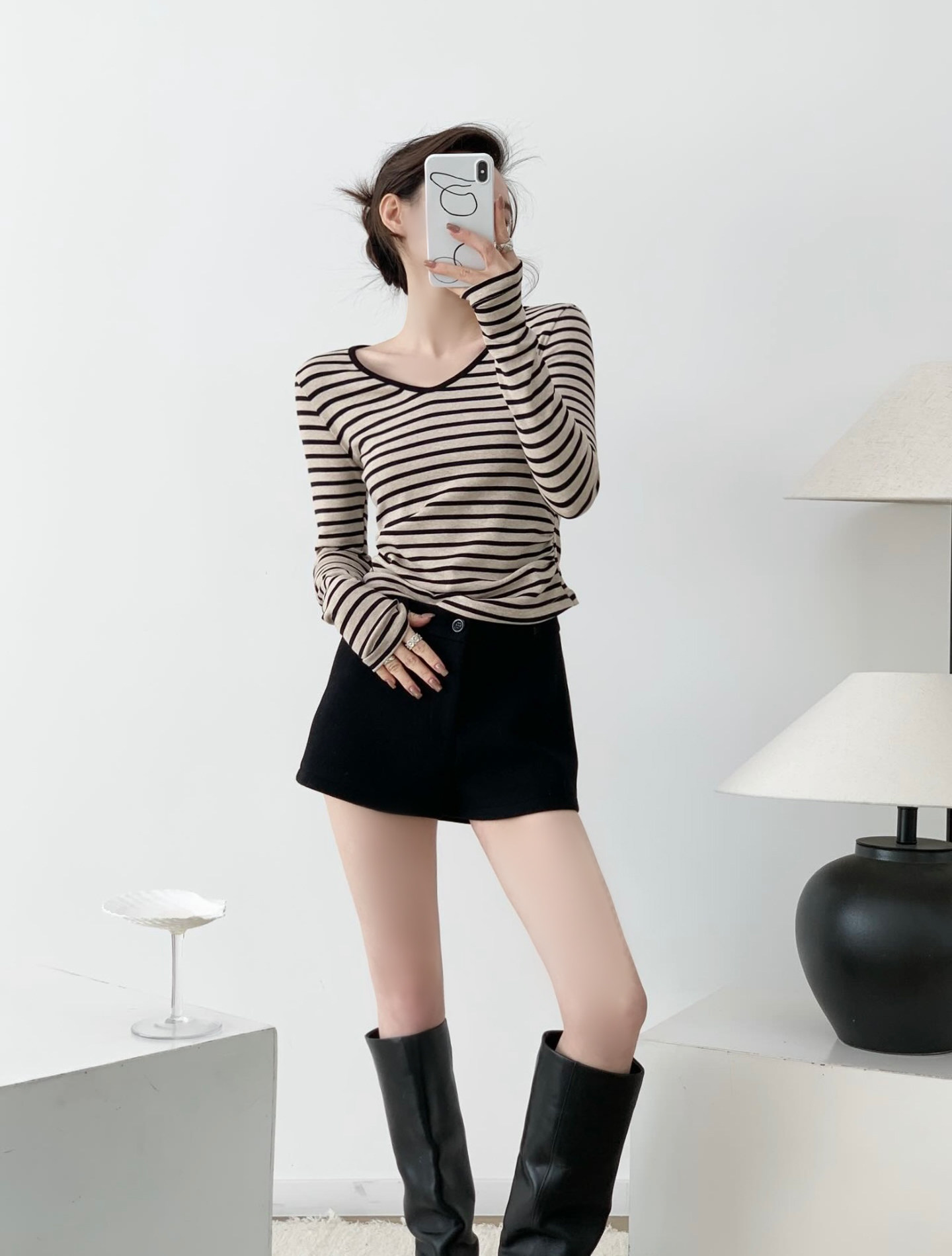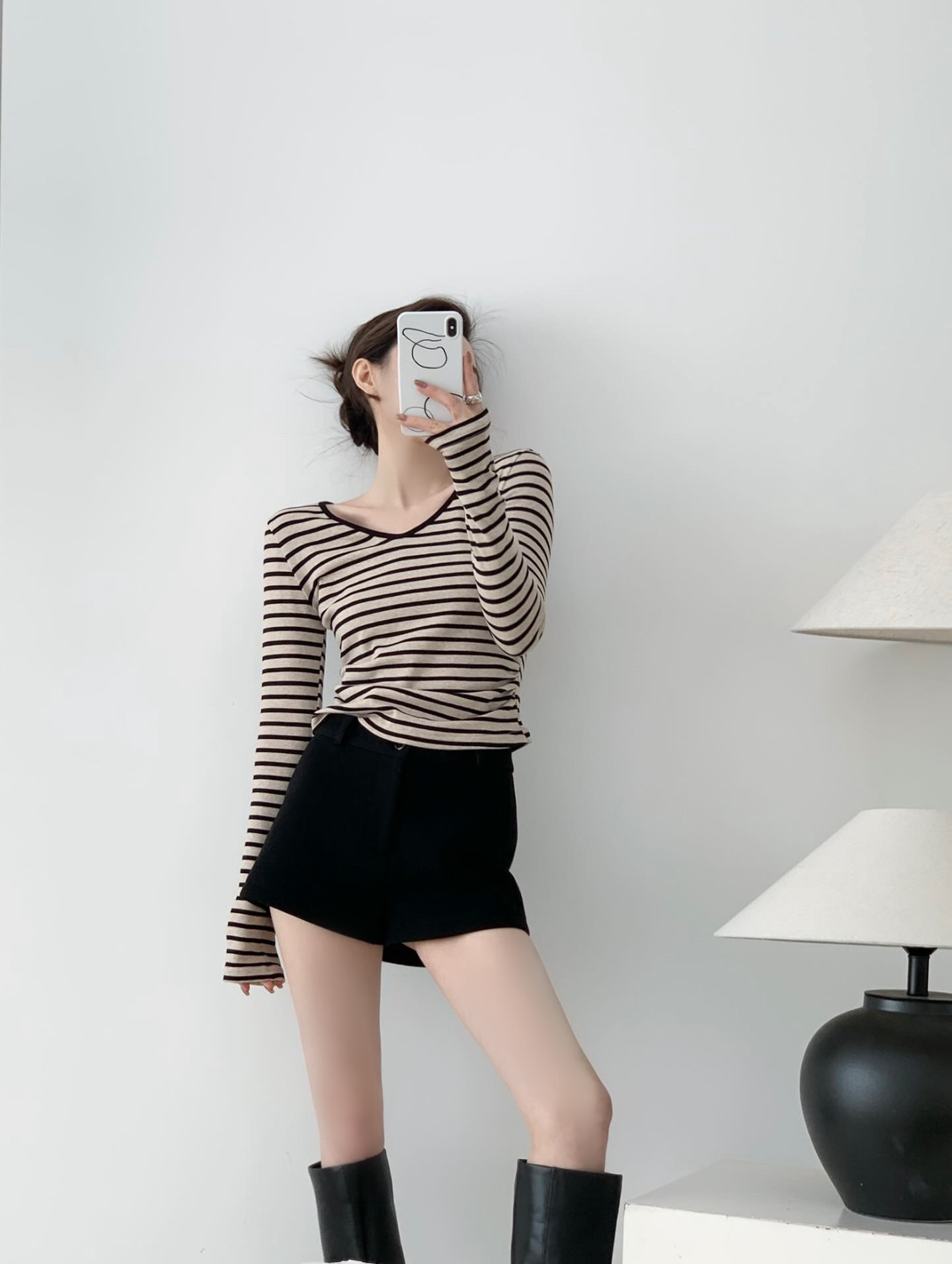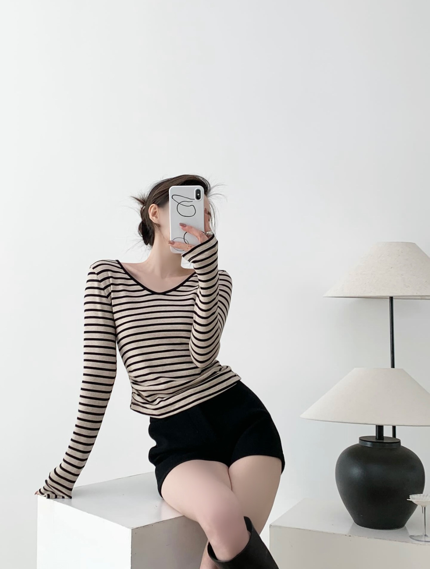 掐腰曲線撞色V領條紋長袖針織上衣,布料採用輕抓絨材質柔軟細膩貼身穿著亦非常舒適親膚,條紋的顏色並非單調的黑撞白,而是黑色與雜杏色的巧妙搭配更顯高級且耐看,大身版型採用掐腰設計更顯著地勾勒出腰部線條,腰部側縫巧妙地加入捏褶處理,對於略有腹部贅肉的女生來說極為友善有效遮掩多餘脂肪,領口採用V領設計不僅修飾臉型還能展現優雅的鎖骨線條,屬於日常經典好穿的一件上衣。
